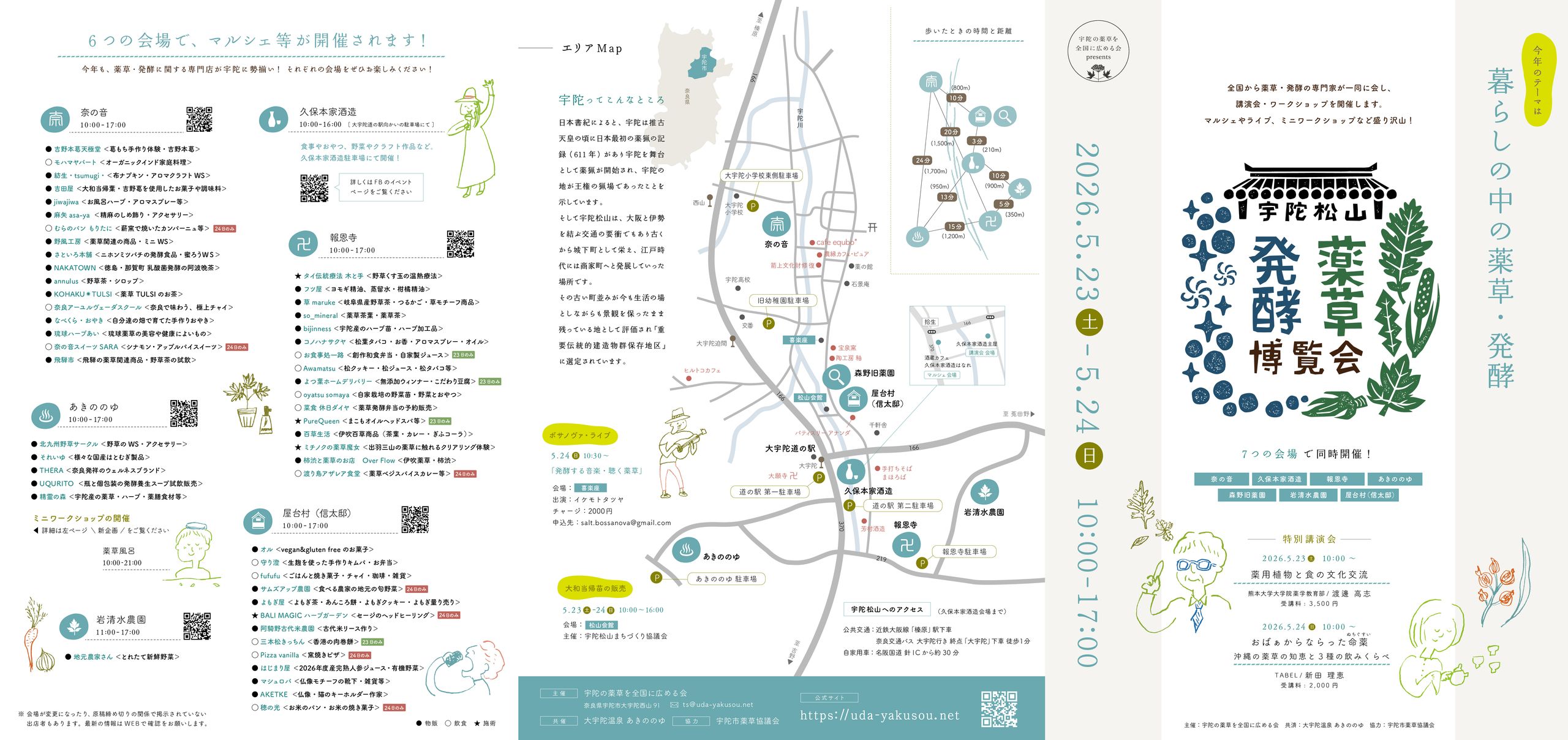 テーマ:暮らしと薬草・発酵! サブテーマ:「衣」「食」「住」「健康」 内容:薬草・発酵に関す講演会、ワークショップ、薬草観察会、マルシェ... 会場:奈の音、久保本家酒造、報恩寺、あきののゆ、森野旧薬園、石景庵....