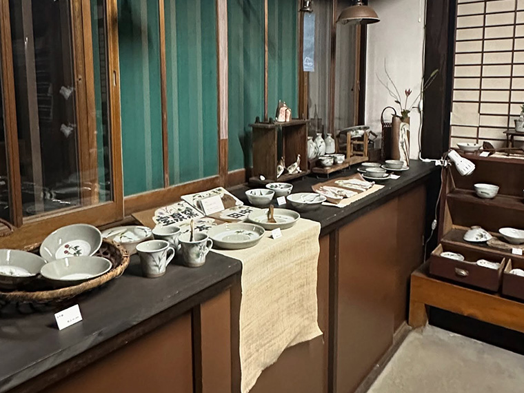 杉本遊炫氏が営む町家の陶芸工房。大宇陀周辺の野草花が描かれた食器、花器、茶器、香炉のほか、約200種類の陶器ボタンを展示販売。歴史的町並みと調和した町家空間で、一点一点手作りの作品に出会える。